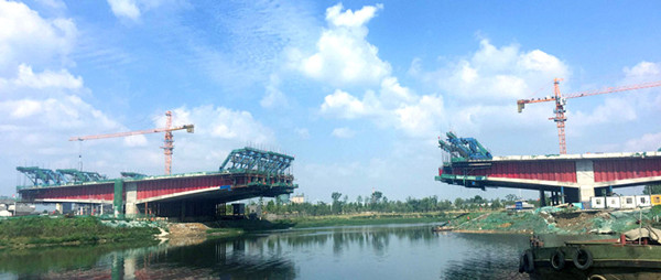 波形鋼腹板組合梁特大橋現場